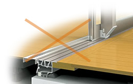 下枠に凸型網戸レール(凹凸がない)がないフラットレールのサッシである