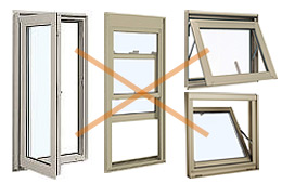 開き窓・すべり出し窓・上げ下げ窓・たおし窓・Fix窓等など、引き違いサッシではない