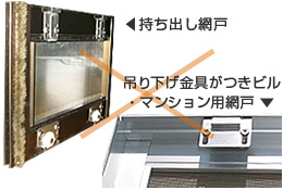 上部に網戸吊り下げ用金具がついている「ビル・マンション用網戸」である